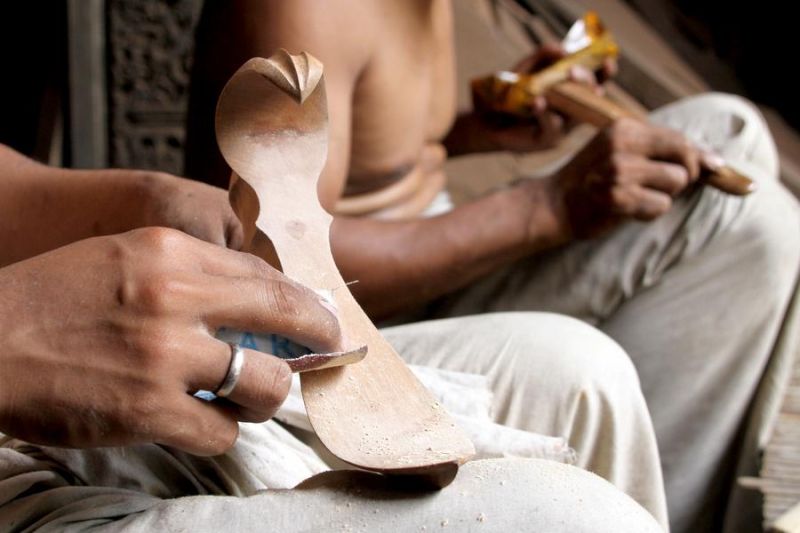 Ukiran, tatahan, dan sepuhan emas, yang menampilkan motif dewa atau hewan, membentuk kesatuan yang harmonis dengan bilah keris itu sendiri.