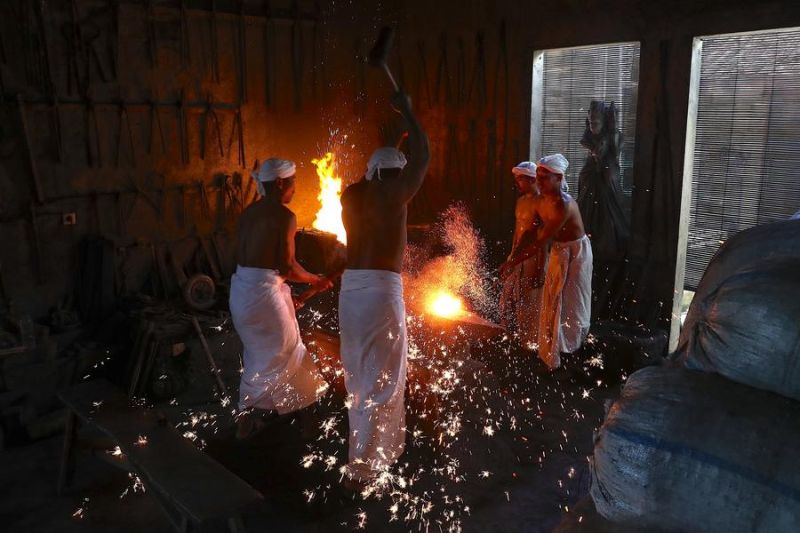 Perajin logam membuat Kris di Museum Keris Brojobuwono di Kabupaten Karanganyar, Jawa Tengah, Indonesia, pada 28 Agustus 2025.