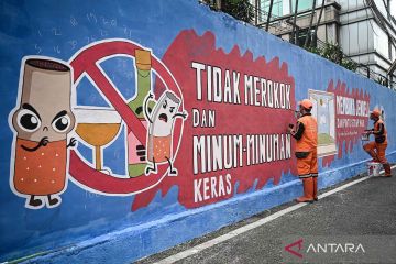 Salah satu sudut Kota Jakarta dipercantik dengan mural ajakan hidup sehat