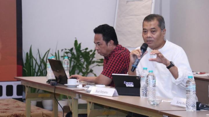 Direktur Tempo Media Group Budi Setyarso dalam Focus Group Discussion (FGD) yang digelar Tempo Media Group dan Pemprov Jakarta di Hotel A-One, Jakarta Pusat, pada Jumat, 5 Desember 2025. TEMPO/Rega Wijaya