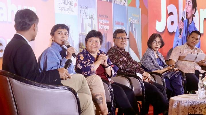 Culinary Story teller Ade Putri Paramadita (kedua kiri) saat bedah buku Jejak Lidah Jejak Selera dalam Diskusi Buku Tematik Berbasis Riset, Menyongsong 500 Tahun Jakarta di Hotel Millenium, Jakarta, pada Kamis, 18 Desember 2025. TEMPO/Lourentius EP