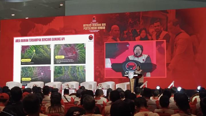 Ketua Dewan Pimpinan Pusat bidang Penanggulangan Bencana PDI Perjuangan Tri Rismaharini menceritakan pengalamannya sebagai Menteri Sosial dari 2020 hingga 2024. Ia mengaku ngeri saat melihat peta daerah rawan bencana dari BMKG.