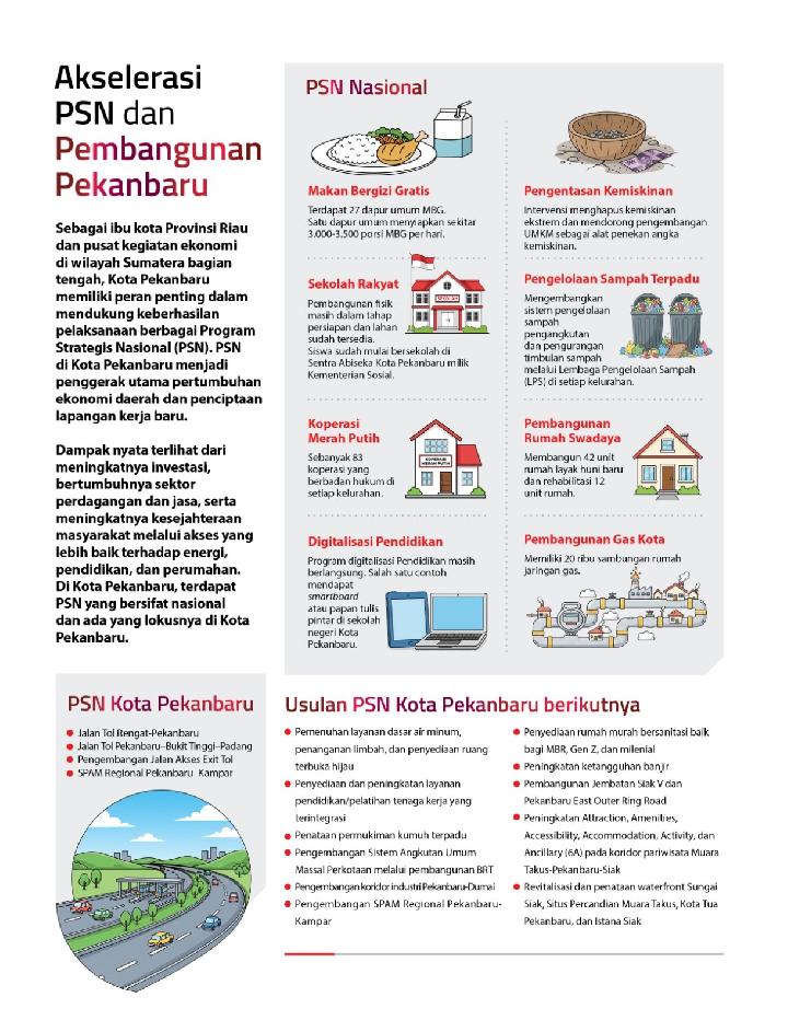 Infografis percepatan Program Strategis Nasional (PSN) dan pembangunan di Kota Pekanbaru sebagai pusat ekonomi Provinsi Riau. Dok. Tempo