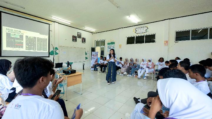 Peserta antusias mengikuti materi kelas yang disampaikan Kak Suci tentang editing video dengan ponsel di SMP Negeri 1 Morotai, Selasa, 14 April 2026. Dok. Bakti Kominfo